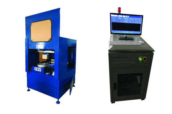 多功能測量儀是我公司為某磨具制造公司開發(fā)的砂輪基體測量設(shè)備。設(shè)備設(shè)置2只二維激光測量傳感器,可測量盤狀基體的外徑、內(nèi)徑、高度、溝槽尺寸及體積等特征尺寸。二維激光測量傳感器1只安裝在側(cè)方,通過基體在托盤上旋轉(zhuǎn)所取得的測量數(shù)據(jù)計(jì)算基體外徑、高度、側(cè)面溝槽等尺寸;另1只安裝在基體上方,可前后、左右移動(dòng)掃描測量基體上表面,從而測量基體的高度、內(nèi)徑、上表面溝槽等特征尺寸。