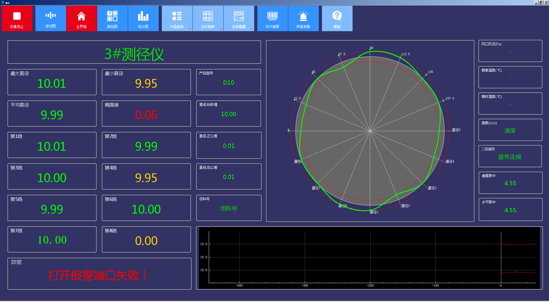 在主界面,除了以不同顏色顯示數(shù)據(jù)之外,還支持以趨勢(shì)圖、截面圖的形式來(lái)顯示待測(cè)物的實(shí)時(shí)數(shù)據(jù),從而方便用戶更直觀的了解測(cè)量數(shù)據(jù)的偏差。